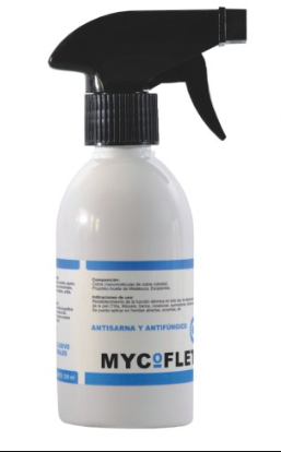 Mycoflex incluye nanomoléculas de cobre coloidal muy eficaces en todo tipo de micosis y sarna además tiene actividad antiséptica gracias a su contenido en tea tree oil (aceite del árbol de té). El extracto de propoleo protege los lugares susceptibles de patogenicidad y acelera la cicatrización.