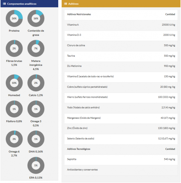 La cantidad recomendada de alimento se puede dividir en varias comidas al día. Esta tabla es una guía, las cantidades pueden variar dependiendo de la raza, actividad y condiciones ambientales. Cuando el alimento se suministra por primera vez, debe ser introducido gradualmente durante 7 días. Poner agua limpia y fresca a libre disposición.